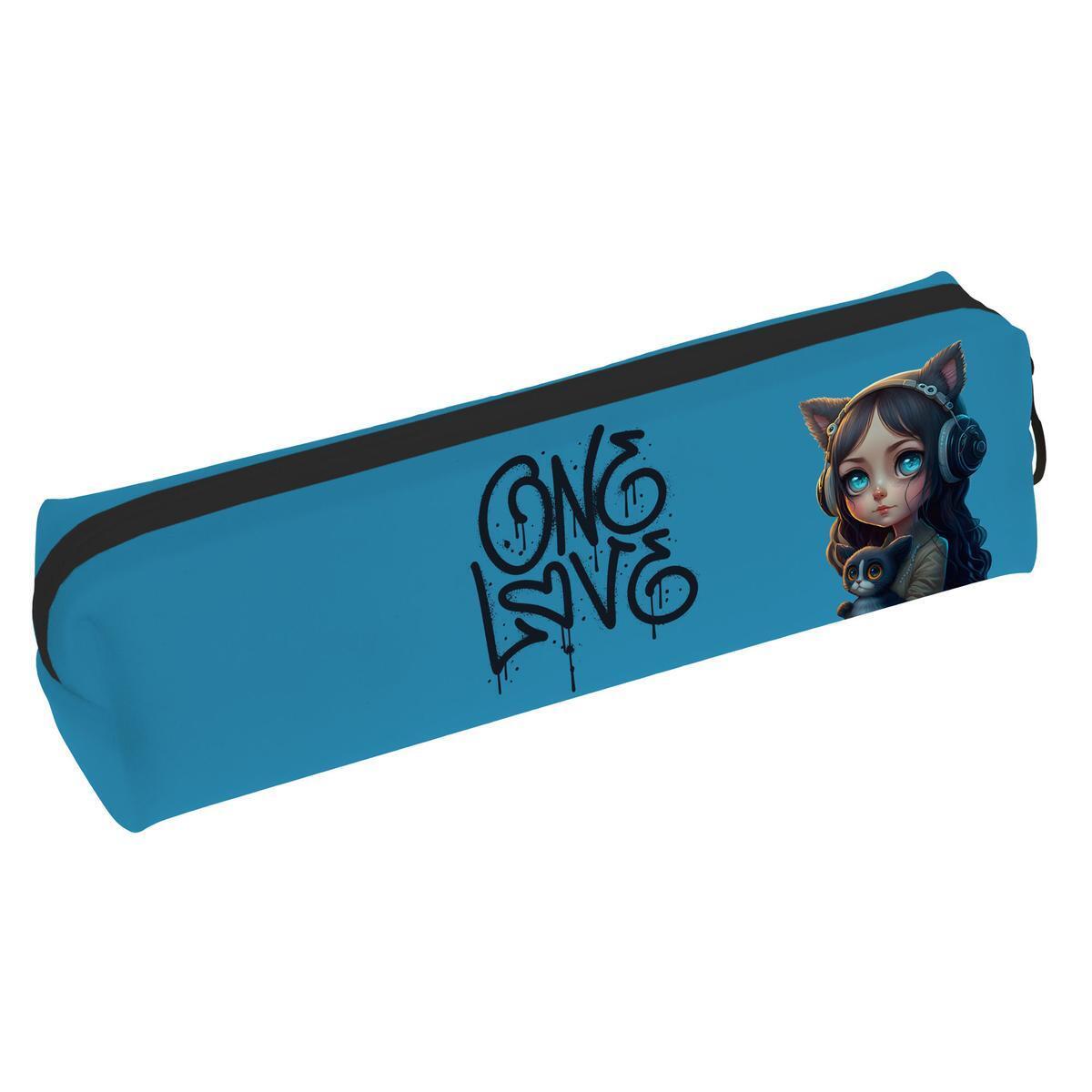 Практичный силиконовый пенал 'ONE LOVE' станет незаменимым помощником в учебе. Его приятное на ощупь софт-тач покрытие и стильный дизайн с изображением девушки-кошки подойдут творческим личностям.