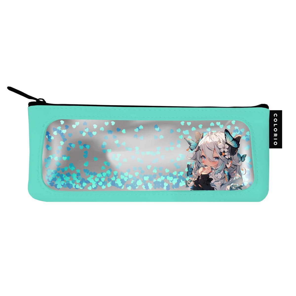 Пенал силиконовый «Аниме» с пайетками, мятный, 19х7,5х3,5см, софт-тач