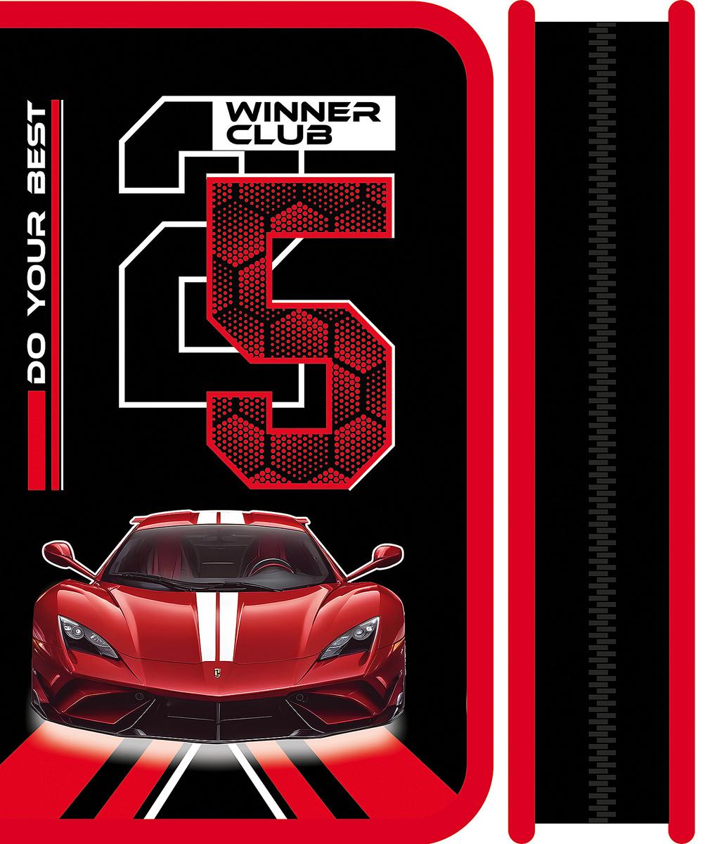 Пенал односекционный «Автоклуб 2025», 19х11.5см, черно-красный дизайн со спорткаром