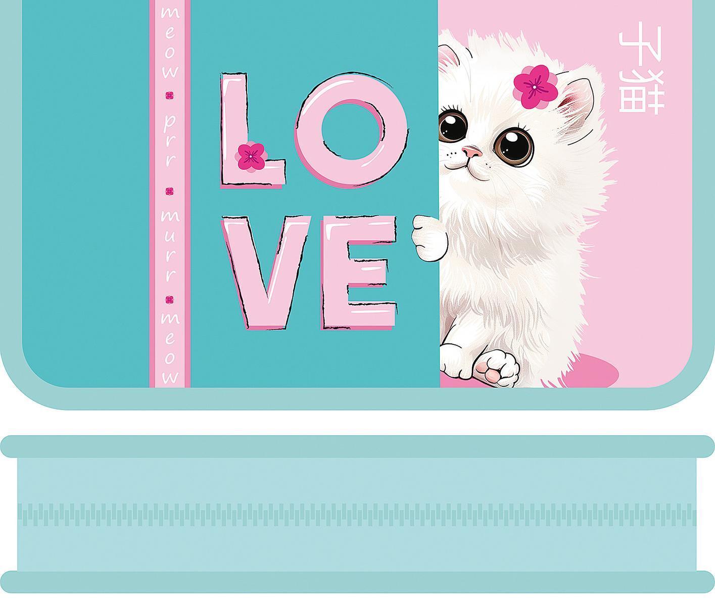 Практичный односекционный пенал с оригинальным дизайном — идеальный выбор для школьников и студентов. Нежный светло-голубой фон с розовыми акцентами и милым котенком создает позитивное настроение, а надежная молния обеспечивает безопасное хранение канцелярских принадлежностей.