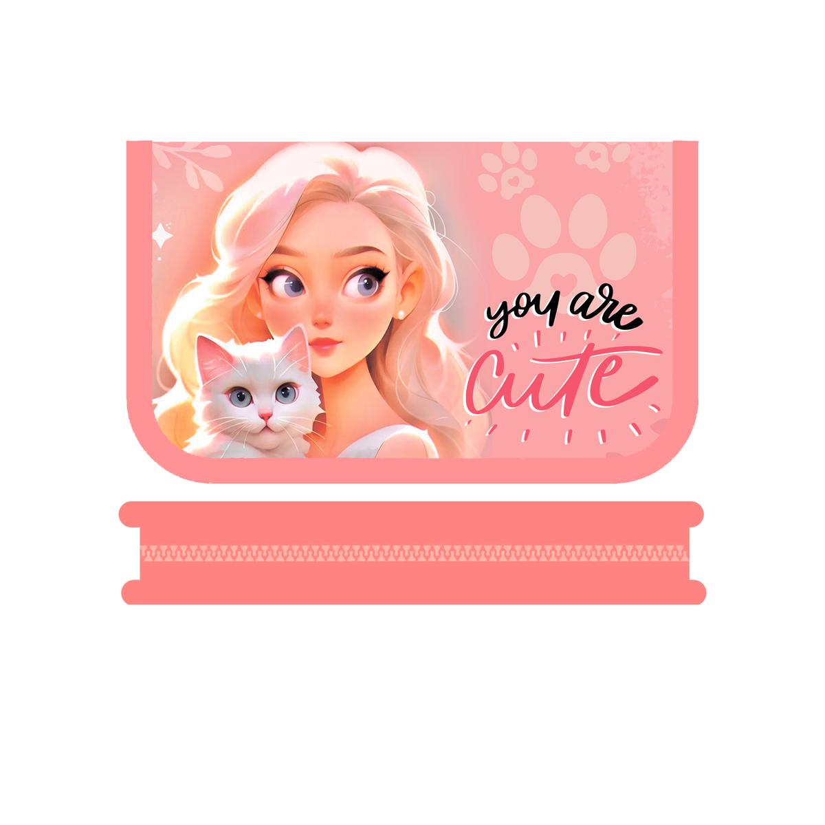 Большой односекционный пенал с откидной планкой помогает держать ручки, карандаши и мелкие аксессуары в полном порядке. Яркий дизайн с изображением девушки и белого котика на розовом фоне поднимает настроение и делает учебные будни приятнее. Такой пенал станет не только практичным аксессуаром, но и выразительной деталью школьного образа.