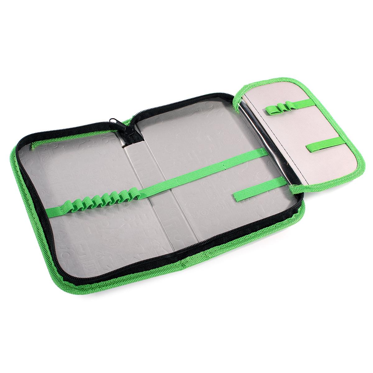 Несмотря на наличие одной секции, пенал отличается повышенной вместимостью благодаря продуманной конструкции. Внутри расположена специальная откидная планка, которая позволяет удобно разместить ручки, карандаши и линейки. Прозрачный карман на планке идеально подходит для расписания уроков или важных заметок, которые всегда должны быть перед глазами. Эластичные резинки ярко-зеленого цвета надежно фиксируют каждый предмет, предотвращая их повреждение и лишний шум при движении.