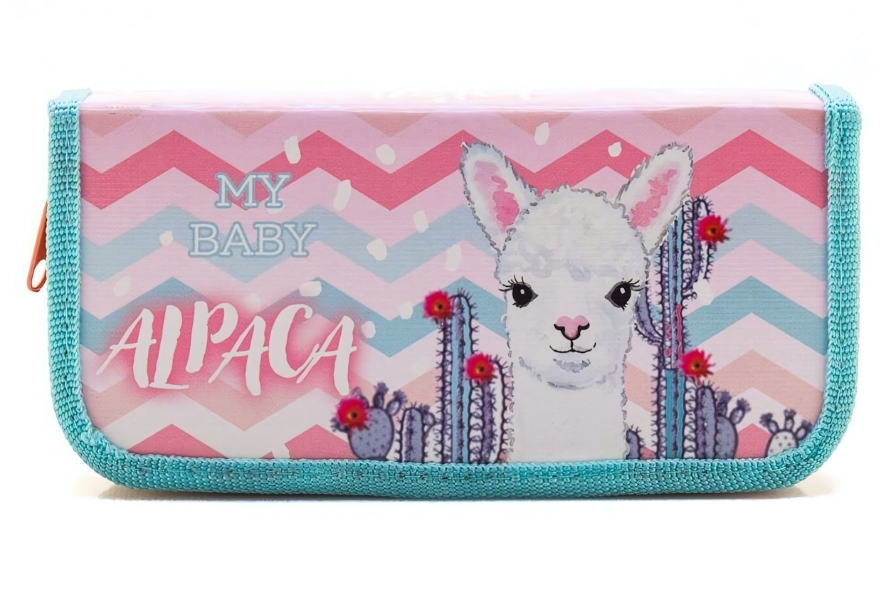 Нежный пастельный фон с контрастными оранжевыми элементами сочетается с популярным принтом альпаки в цветочном обрамлении. Внутренние эластичные ленты надёжно фиксируют письменные принадлежности, предотвращая их перемещение во время носки.