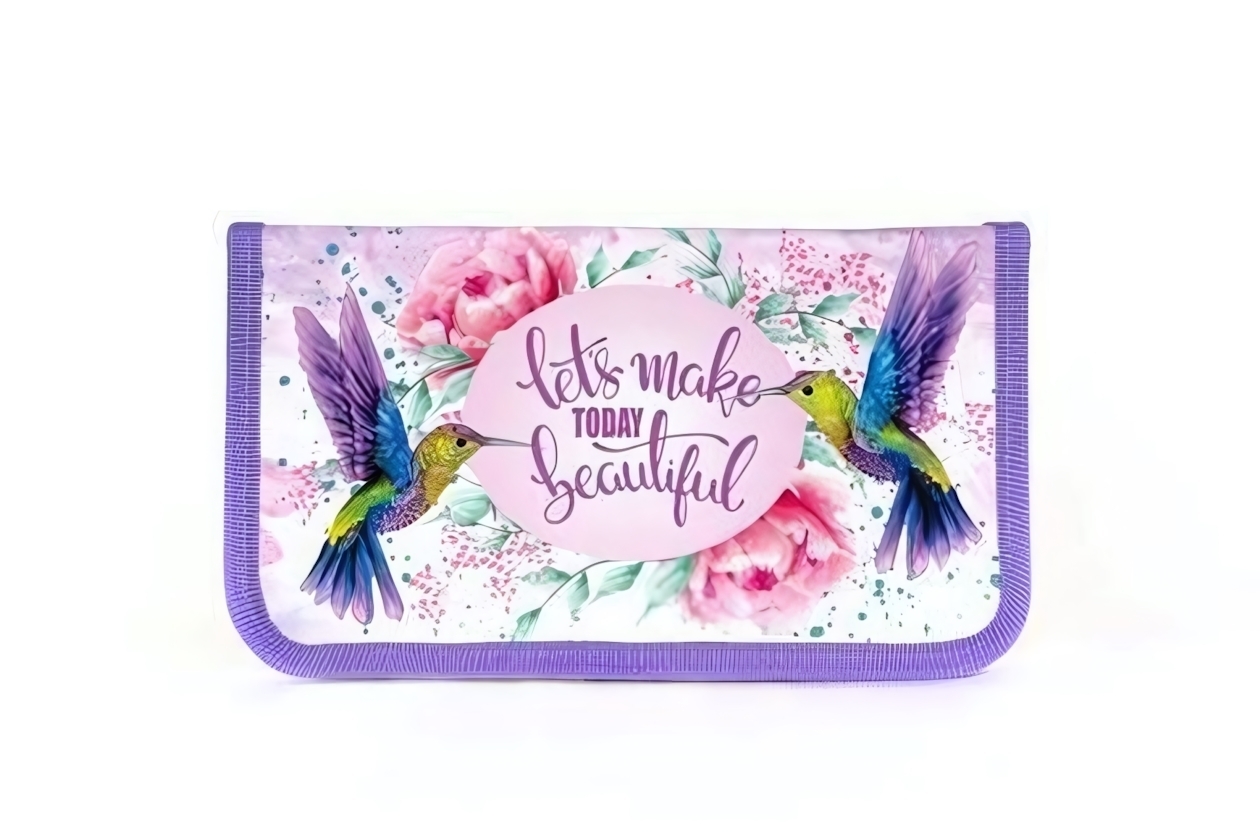 Создайте настроение с этим стильным пеналом, который сочетает практичность и вдохновляющий дизайн. Яркие колибри и нежные розы на пастельном фоне превращают обычную принадлежность в произведение искусства.