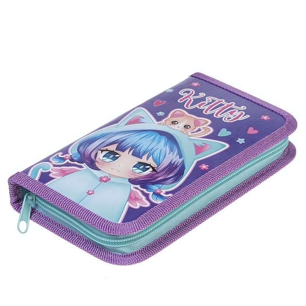 Пенал 'Девочка-кошка' станет идеальным выбором для вашего ребенка, сочетая функциональность и стильный дизайн. Яркий принт с аниме-девочкой и кошкой привлечет внимание любого ученика.
