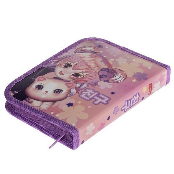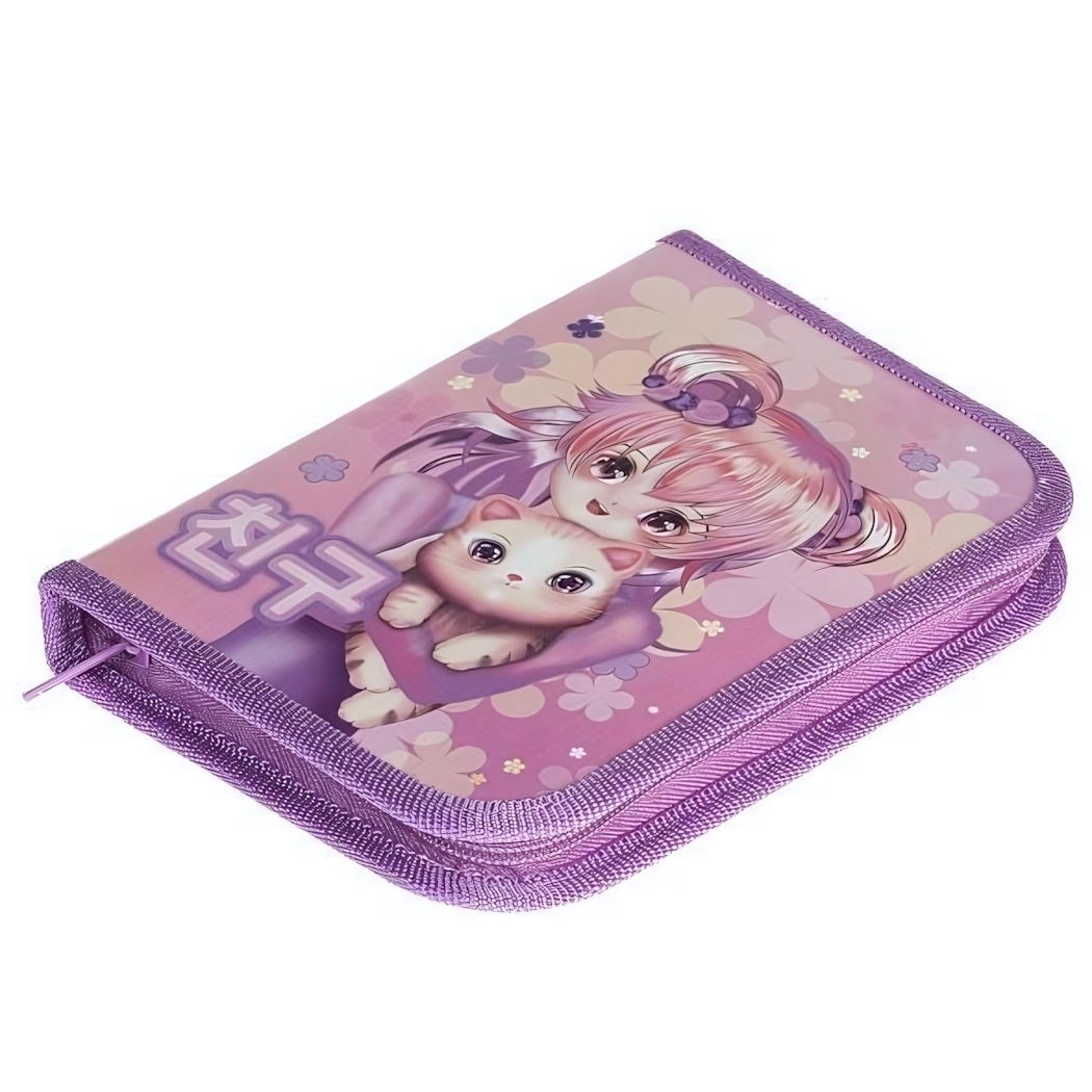 Подарите ребёнку радость и организованность с этим стильным пеналом. Его дизайн с милым котиком и аниме-персонажем непременно понравится юному ученику, а практичное исполнение порадует родителей.