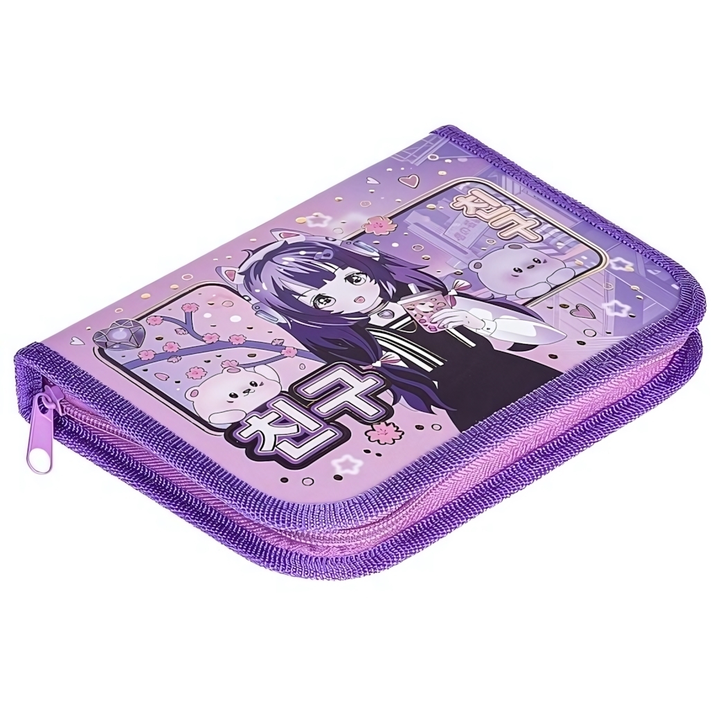Этот яркий пенал с уникальным дизайном не только порадует глаз, но и станет надежным помощником в школе. Фиолетовый цвет с милыми аниме-мотивами создает позитивное настроение каждый день.