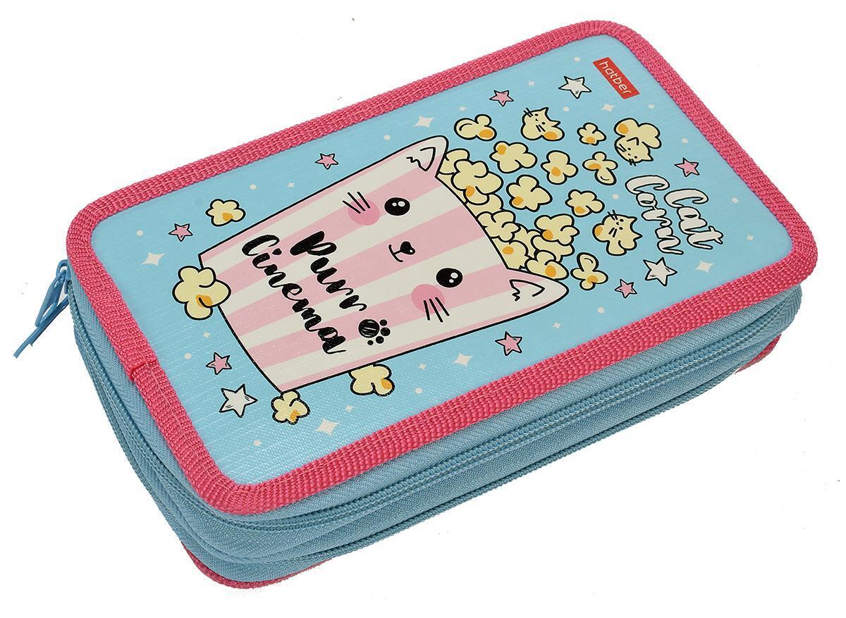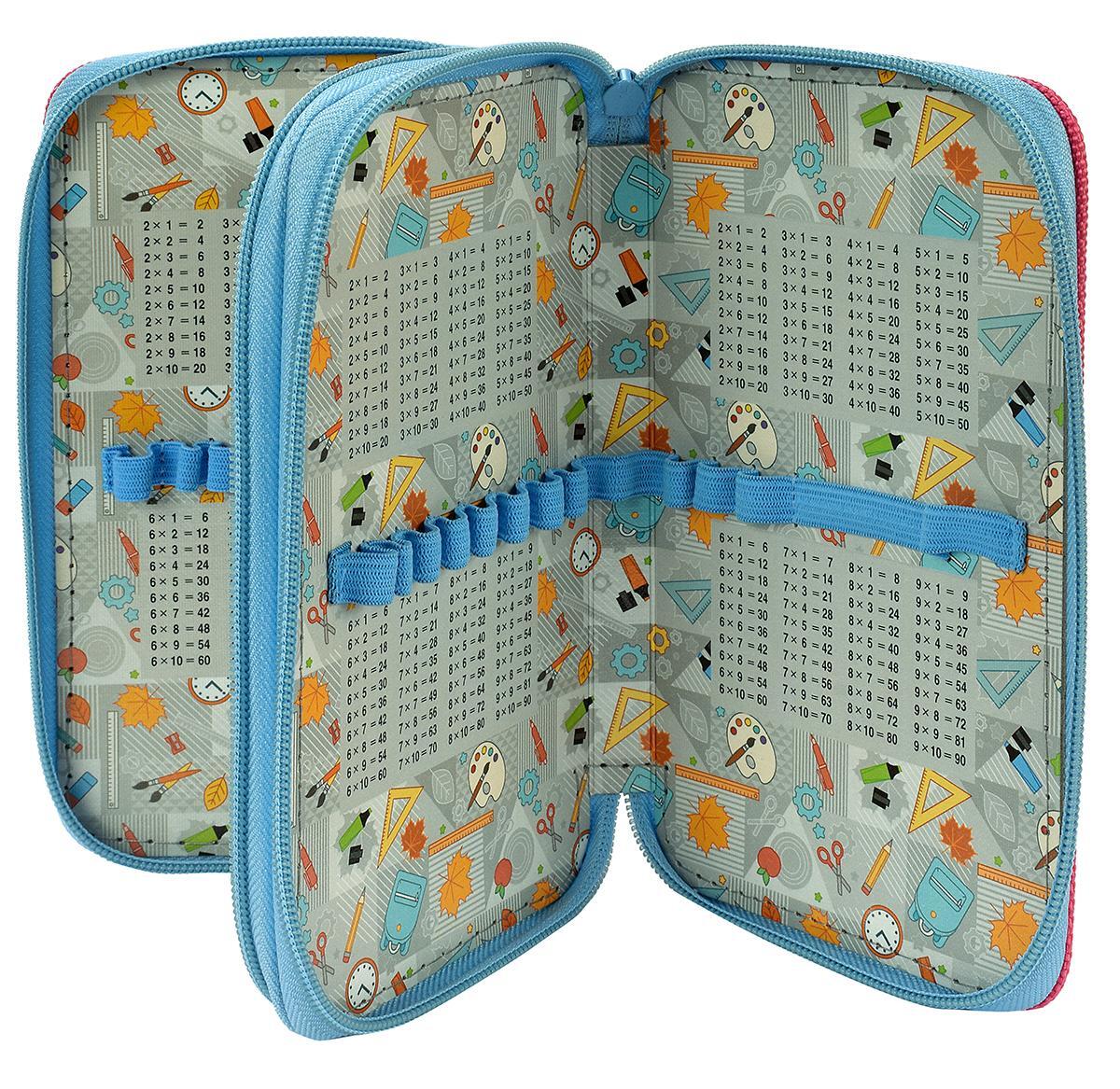 Пенал школьный "Catcorn" с таблицей умножения, 2 отделения, 19х11 см, текстиль, голубой