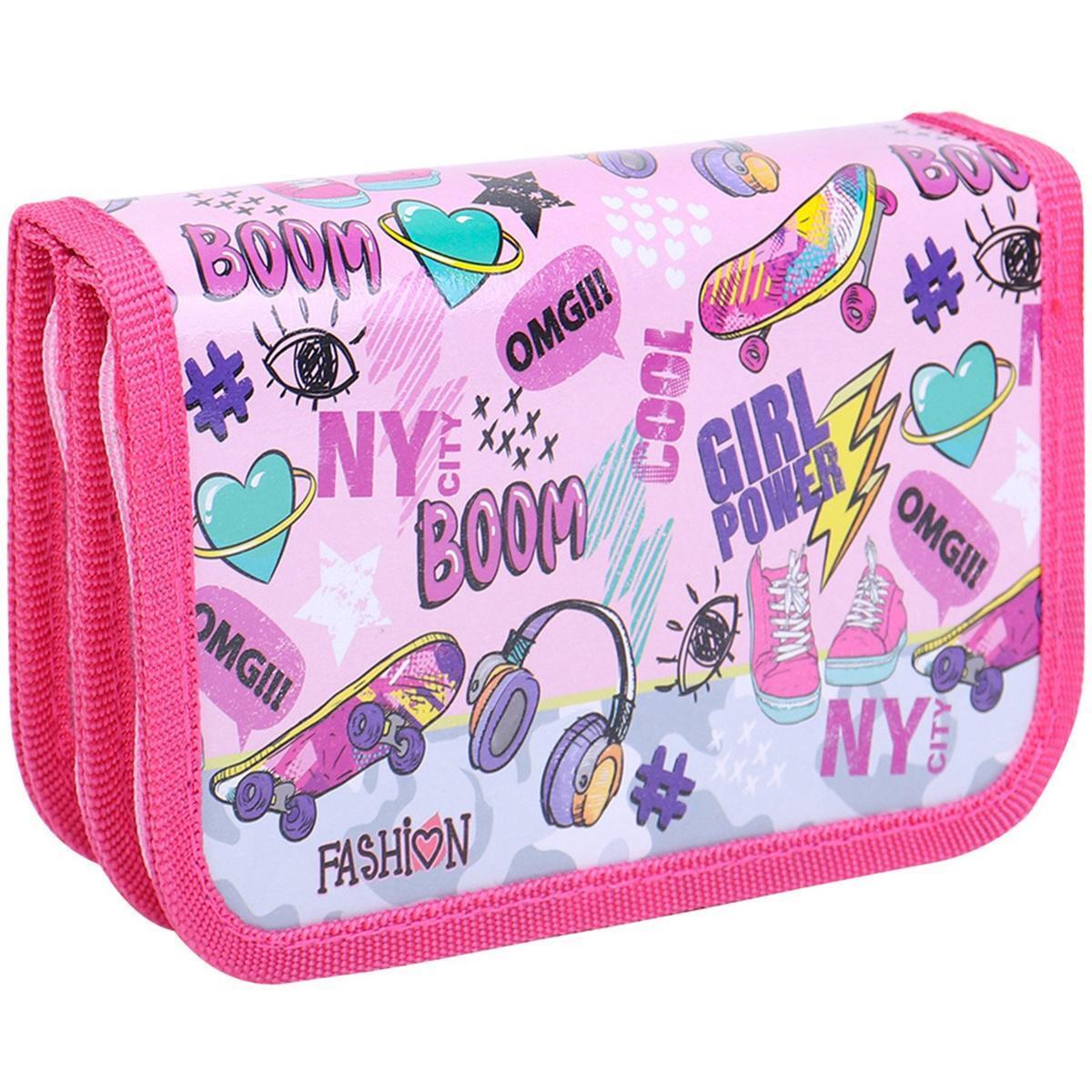 Пенал школьный "Модный орнамент", 2 секции, ламинированный картон, 19х11.5см, розовый