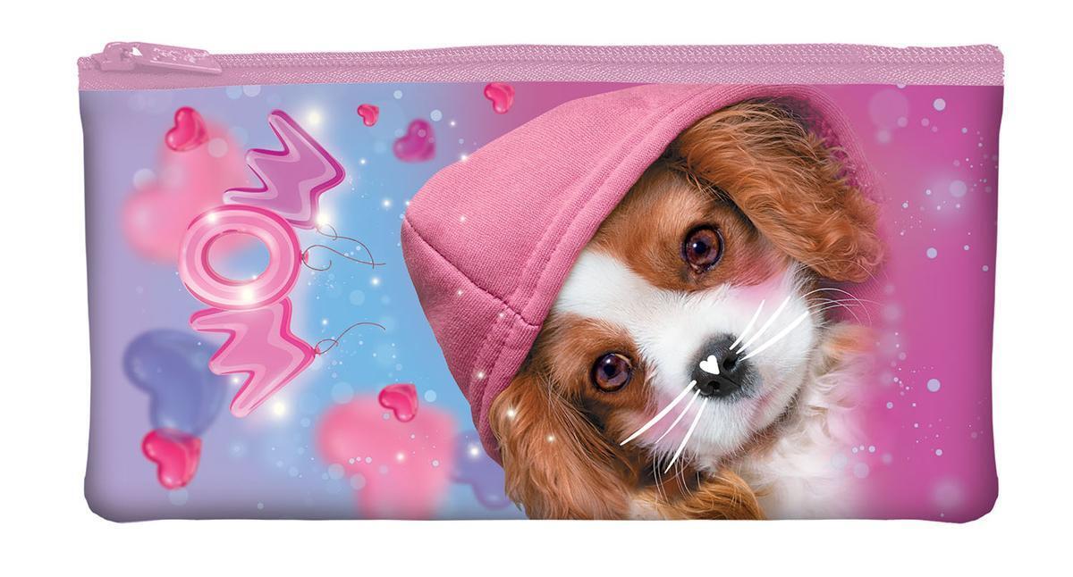 Этот пенал не только практичен, но и добавляет яркие эмоции в повседневную жизнь. С его помощью вы сможете организовать свои канцелярские принадлежности или использовать его как стильную косметичку. Яркий дизайн с изображением милой собаки и надписью 'WOW' поднимет настроение и станет отличным подарком для детей и взрослых.