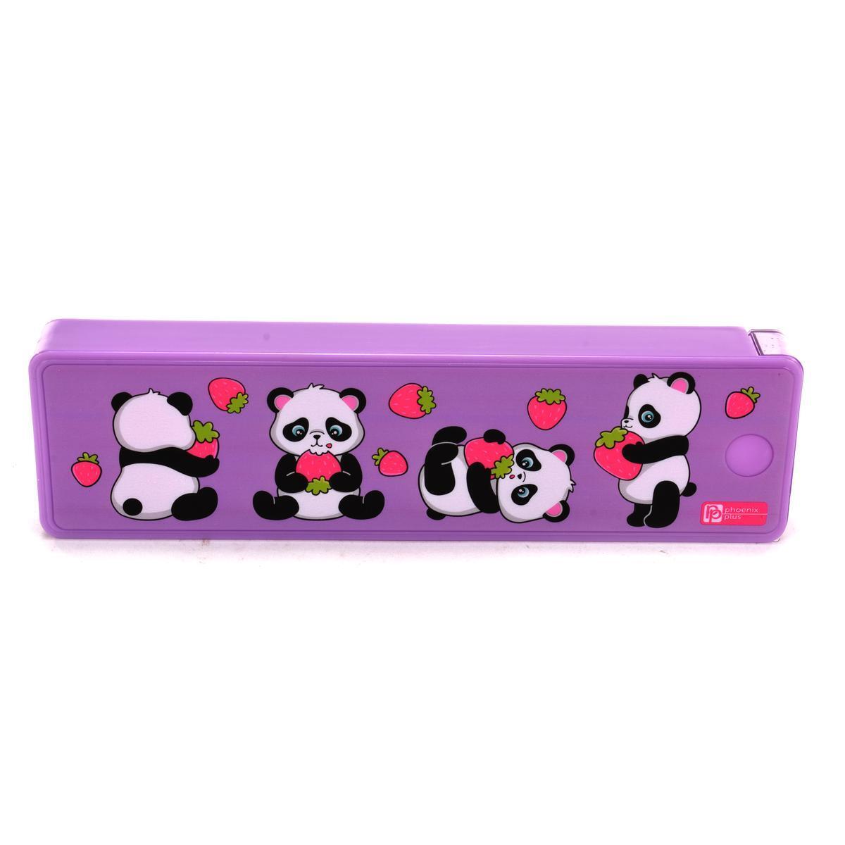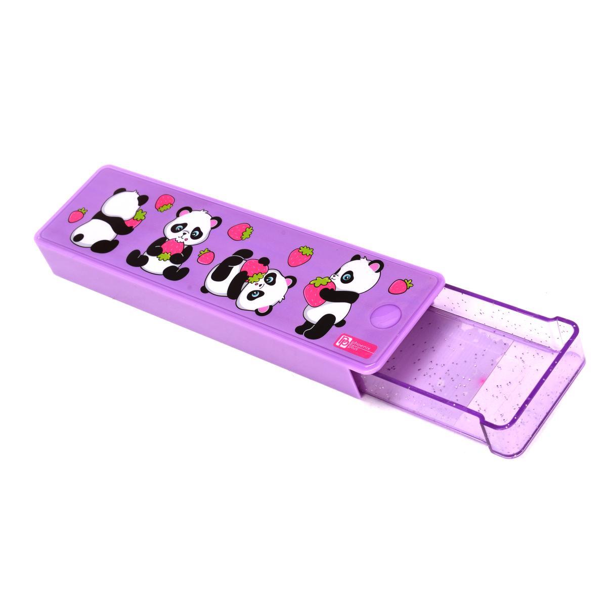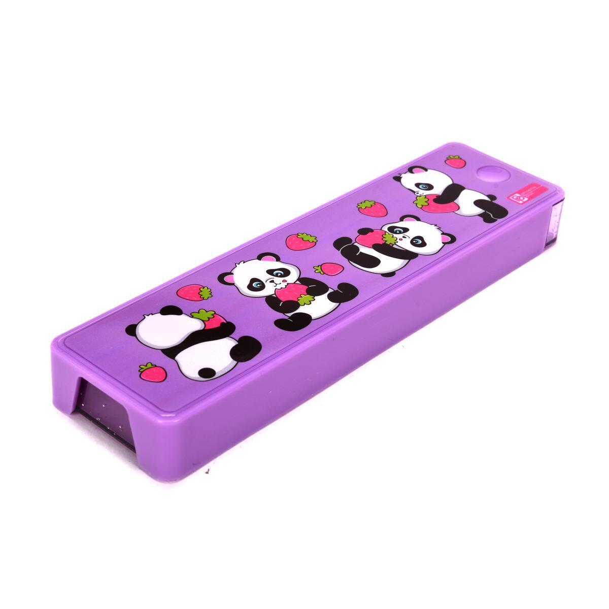 Пенал школьный 'Пандочки' 20х5.5х2.2см, полистирол, фиолетовый, яркий дизайн