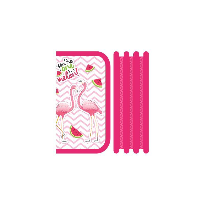 Этот пенал станет идеальным спутником для вашего ребенка, обеспечивая комфорт и удобство в использовании. Яркий дизайн с изображением фламинго и арбузов не только привлечет внимание, но и создаст позитивное настроение на протяжении всего учебного дня.