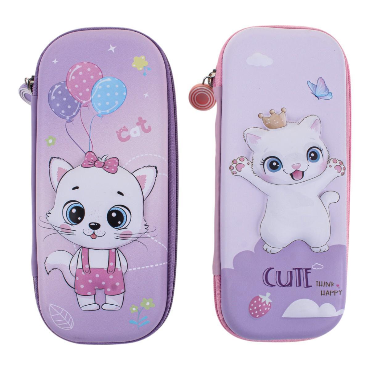 Подходит для учеников начальной и средней школы. Яркие дизайны с изображением кошек понравятся детям и подросткам. Размер позволяет носить пенал как в рюкзаке, так и отдельно.