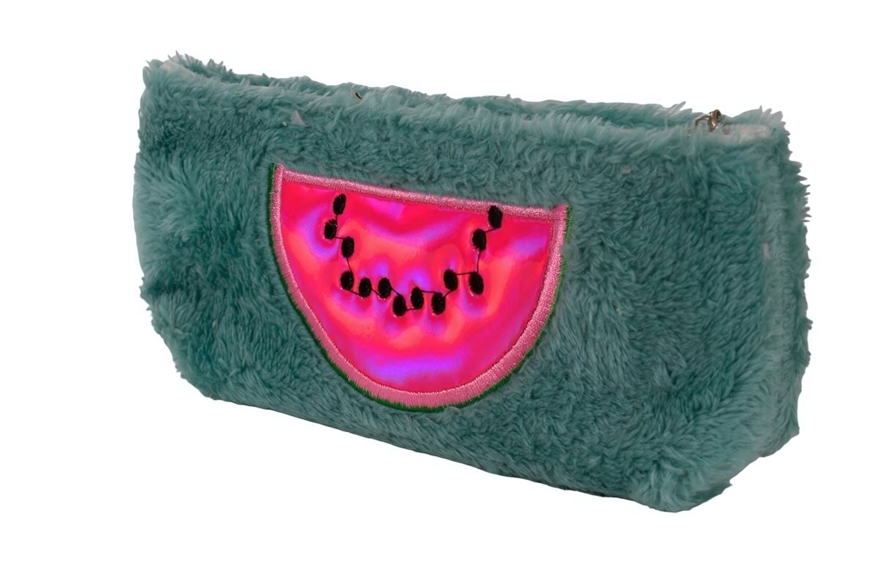 Пенал меховой с аппликацией "Арбуз", 19×3×8,5см, 3 цвета, вместительный органайзер для аксессуаров