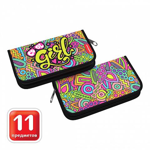 Пенал-книжка "Cool Girl" ErichKrause с наполнением, 11 предметов, 110x205x25мм, для девочки