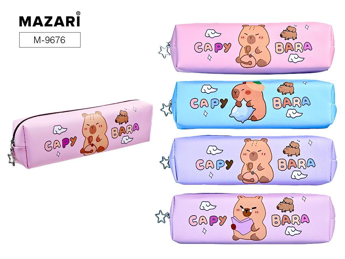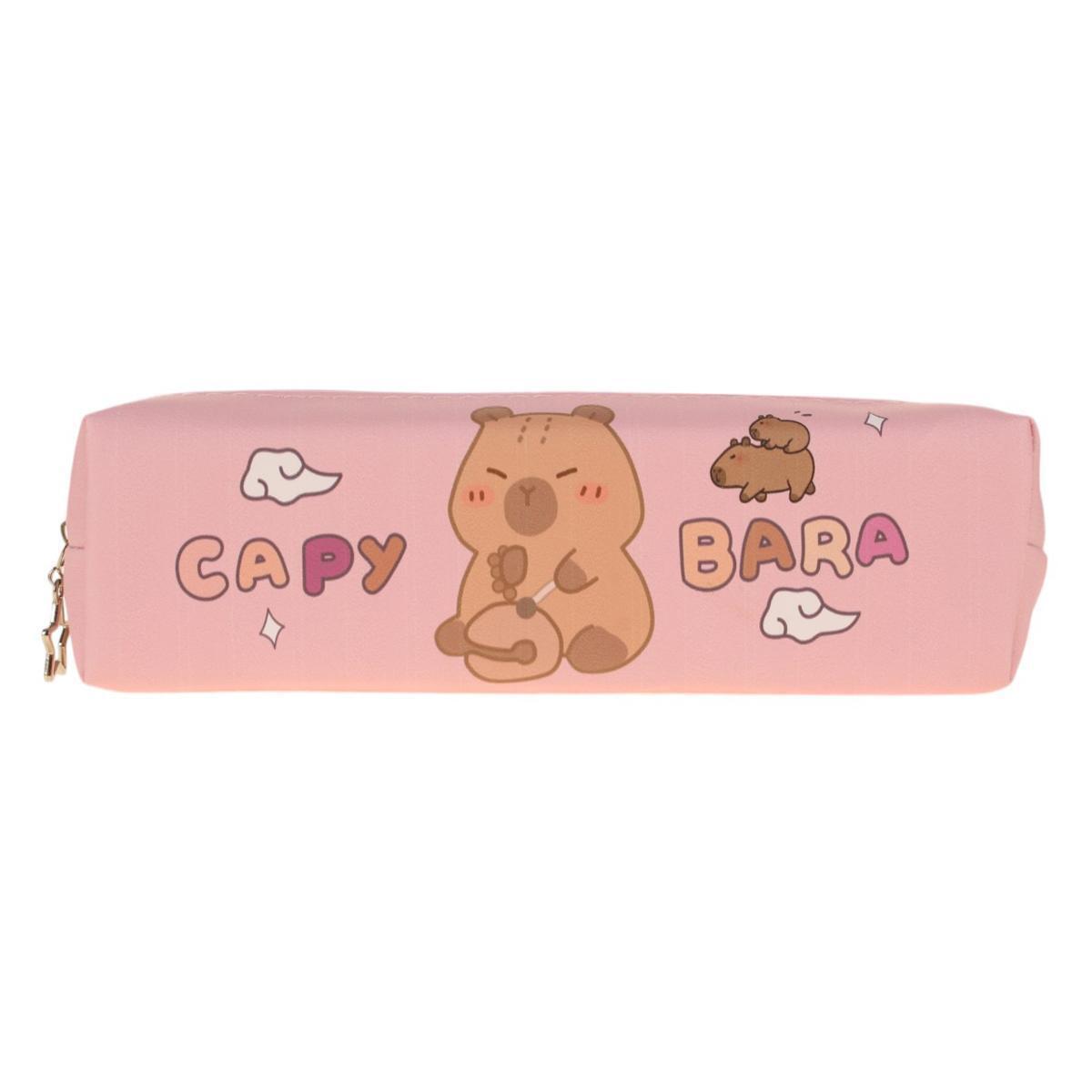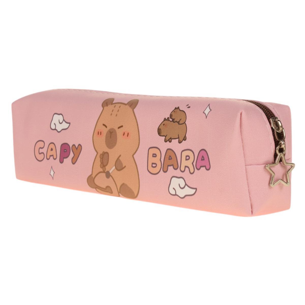 Пенал доступен в четырех дизайнах, каждый из которых украшен милыми изображениями капибар и яркими надписями 'CAPY BARA'. Он станет отличным подарком для друзей и близких, а также незаменимым аксессуаром для учебы или работы.