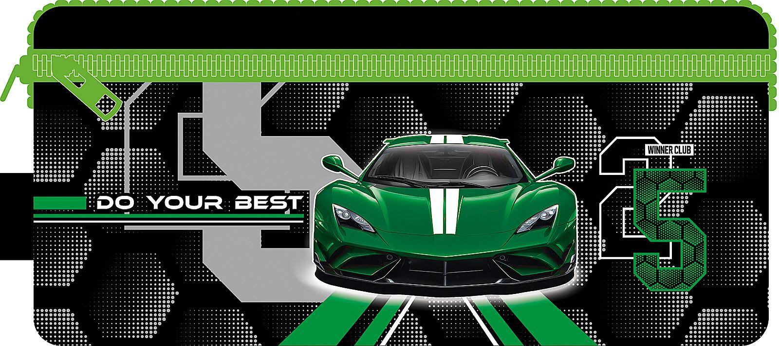 Этот стильный пенал-косметичка станет идеальным аксессуаром для вашего повседневного использования. Он не только удобен, но и привносит нотку спортивного стиля благодаря яркому принту с изображением спортивного автомобиля. Основной цвет косметички - черный с зеленым, что делает ее универсальной для любого стиля.