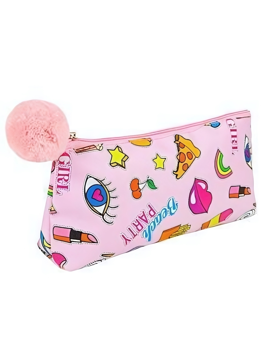 Пенал-косметичка розовая с помпоном, принт "Фуд", 19х4,5х9 см – стильный аксессуар