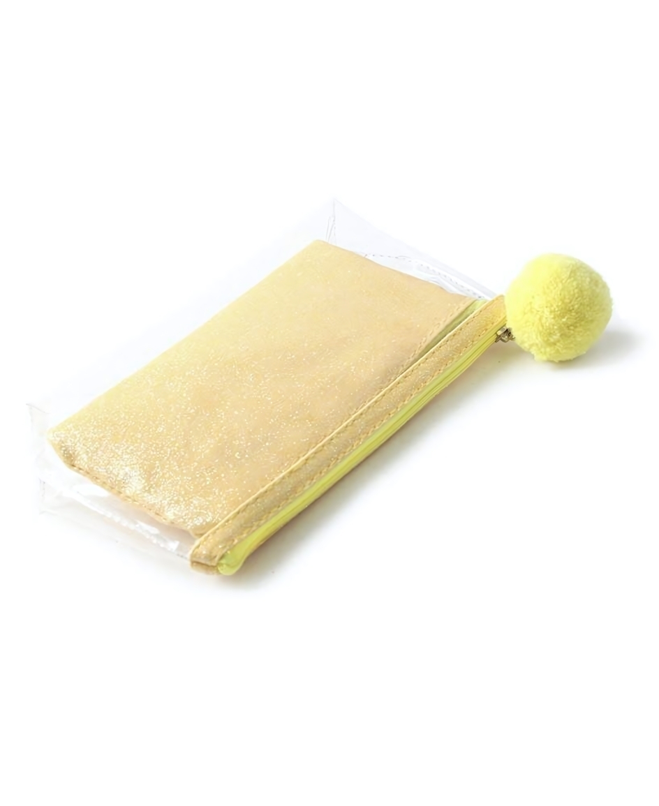Элегантный пенал-косметичка в ярком желтом цвете с блестками