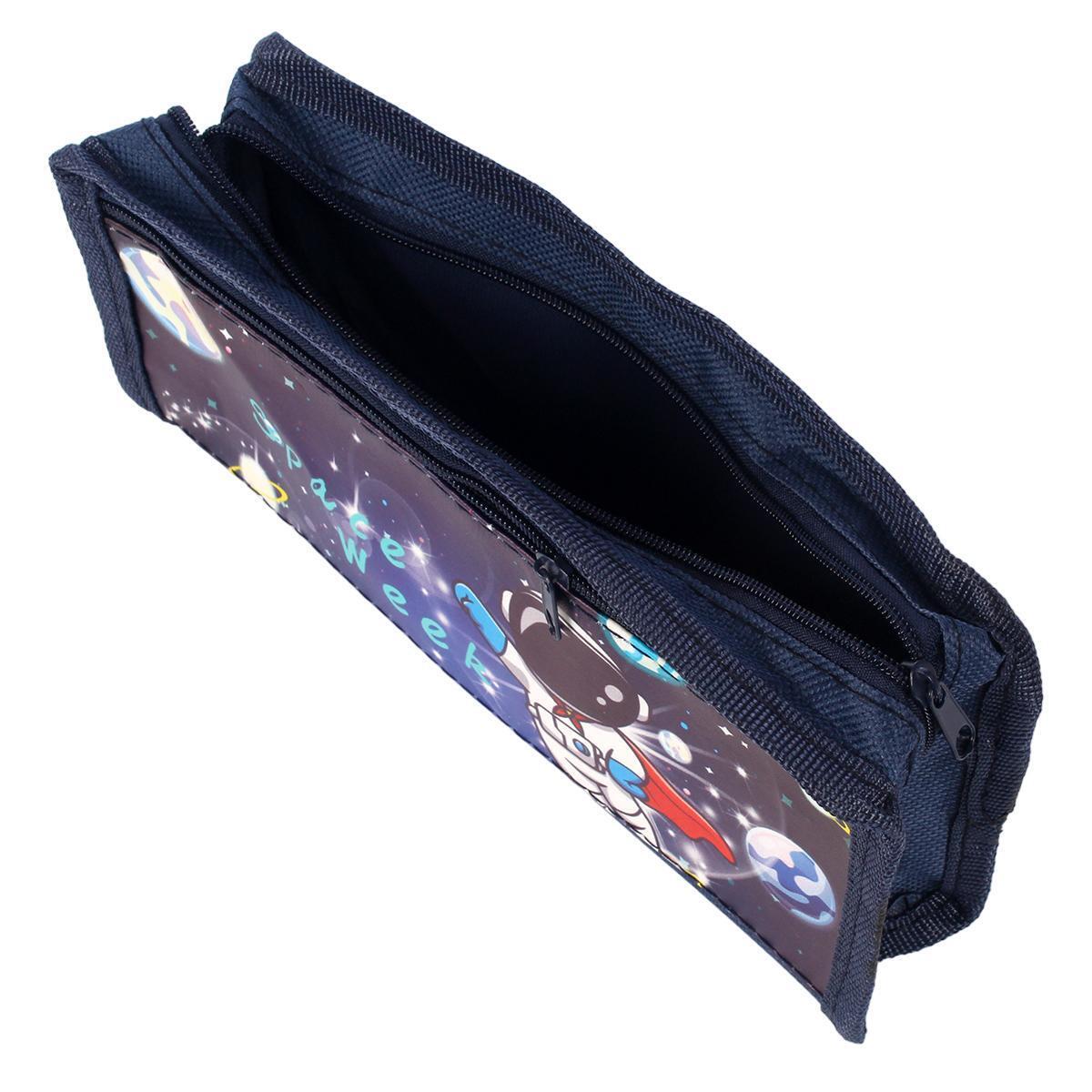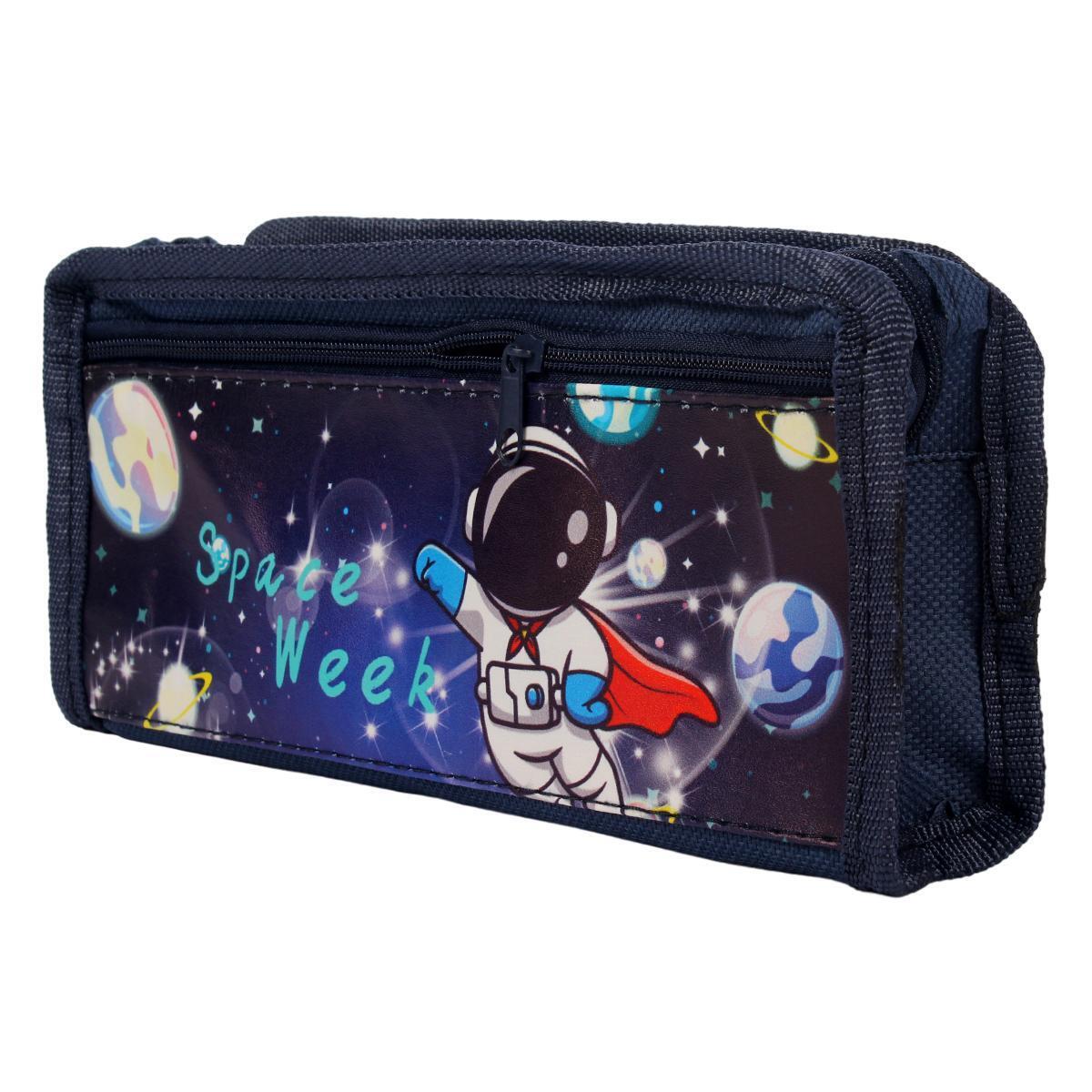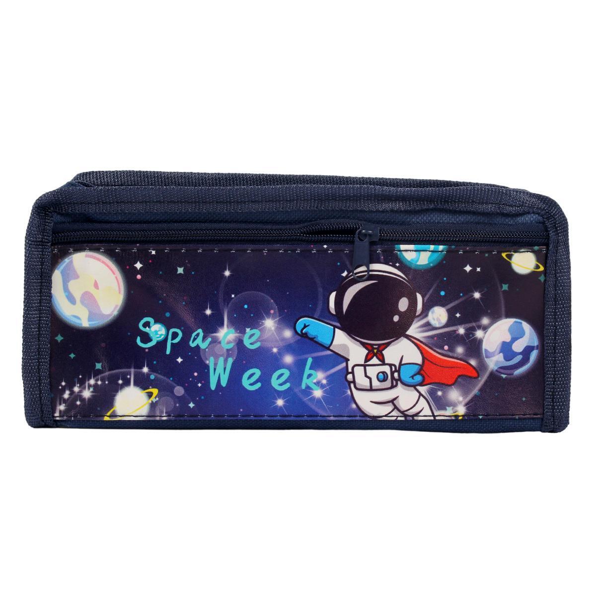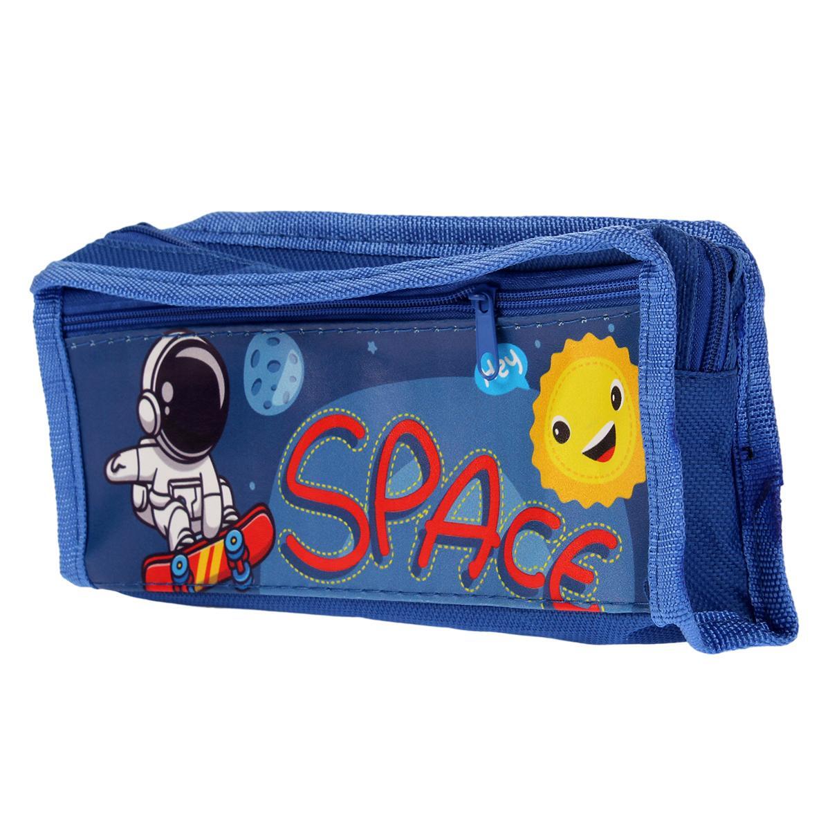 Практичный текстильный пенал с космическим дизайном поможет организовать школьные принадлежности и станет любимым аксессуаром вашего ребёнка. Яркие принты с астронавтами и планетами подчеркнут индивидуальность владельца.