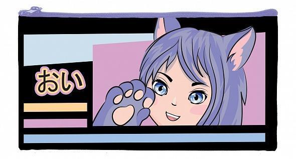 Особенность этого пенала — двусторонний дизайн с разными персонажами. На одной стороне изображены жизнерадостные герои с контрастными прическами, на другой — милый кошачий персонаж с фиолетовыми акцентами. Черный фон с цветными элементами делает рисунок выразительным и устойчивым к загрязнениям.