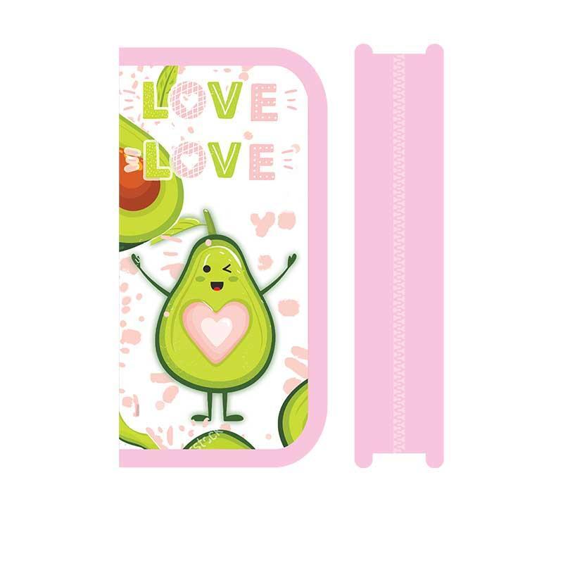 Пенал школьный с принтом авокадо "Сердце авокадо", 19х9 см, зеленый, розовый, односекционный