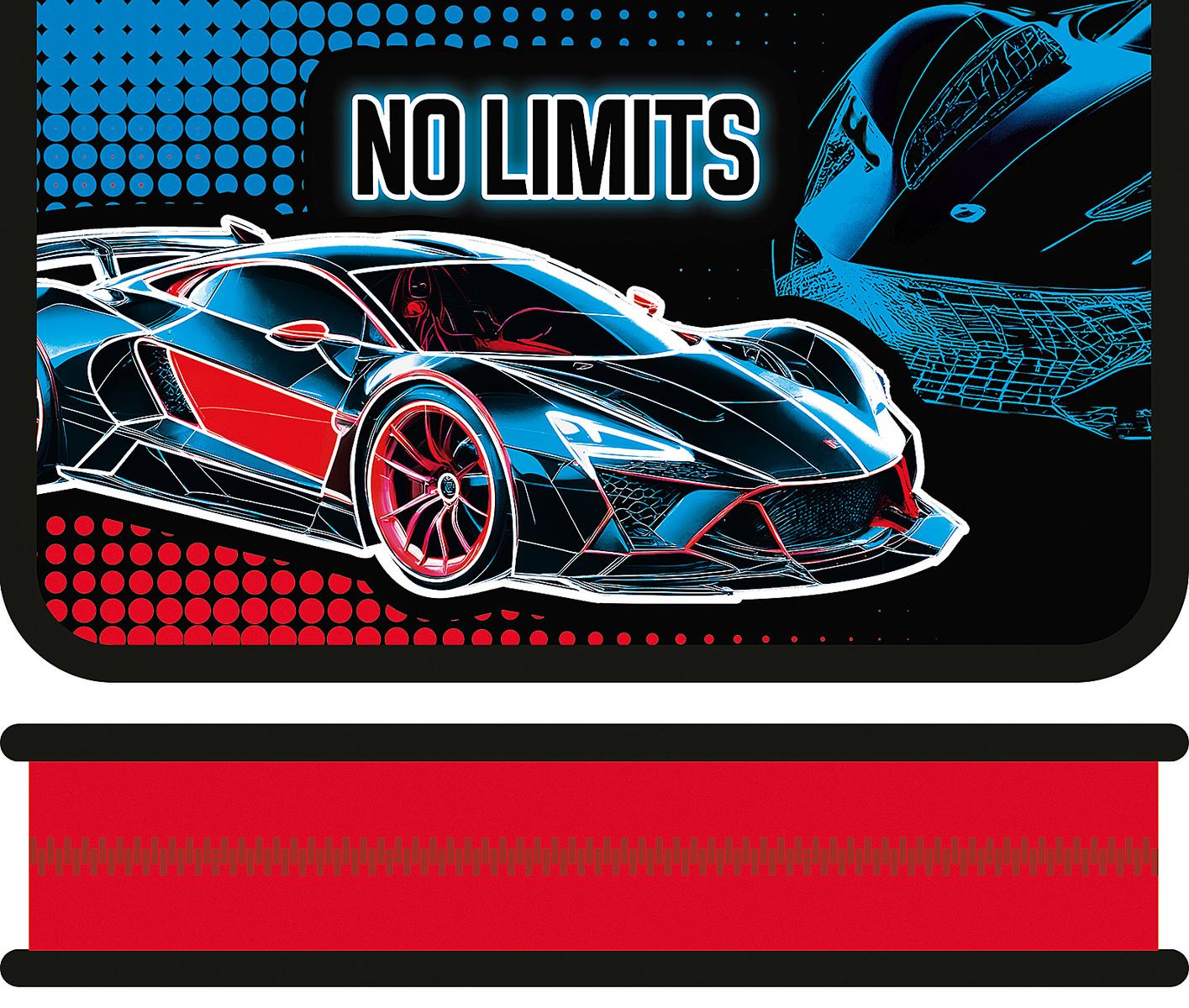 Главная особенность модели — динамичный принт с изображением спортивного автомобиля и мотивирующей надписью "No limits". Яркое сочетание черного, синего и красного цветов обязательно понравится мальчикам, подчеркивая их индивидуальность. Благодаря компактному размеру 190х115 мм, пенал легко помещается в любой рюкзак или сумку, не занимая много места, но при этом оставаясь очень вместительным.