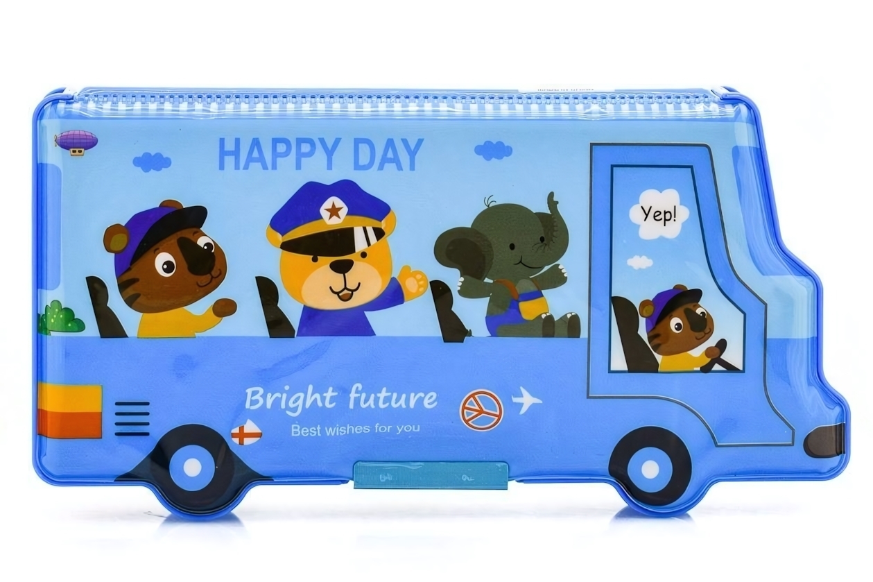 Пластиковый пенал 'Автобус' станет ярким и практичным аксессуаром для вашего ребенка. Компактный размер 22х12х4 см и веселый дизайн с животными создают идеальное сочетание функциональности и радости.