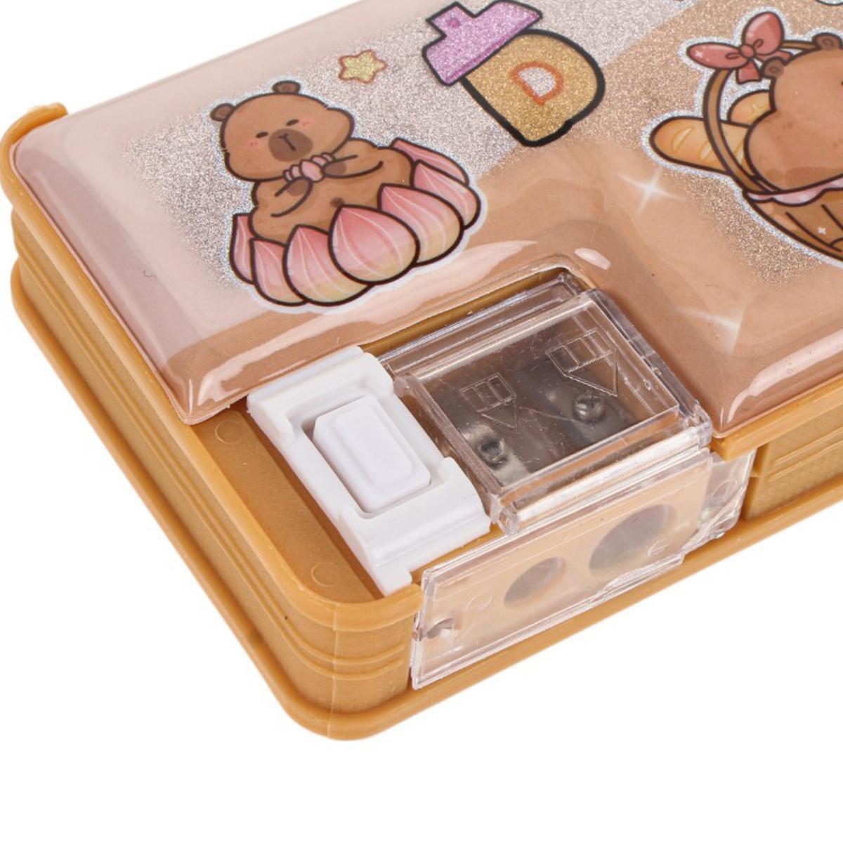 Этот яркий и стильный пенал станет идеальным спутником для вашего ребенка в школе или на занятиях. Он не только привлекает внимание своим дизайном, но и обеспечивает удобство хранения канцелярских принадлежностей. Благодаря блесткам и оригинальному оформлению, пенал "Капибара" добавит ярких красок в учебный процесс и поднимет настроение.