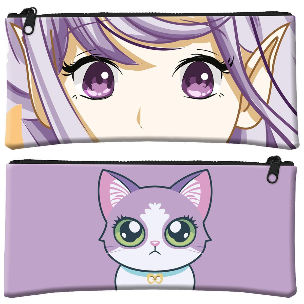 Этот прямоугольный пенал с уникальным дизайном в стиле аниме станет незаменимым аксессуаром для вашего ребенка. Двусторонний рисунок с изображением девочки с фиолетовыми волосами и милого котика с большими глазами поднимет настроение и добавит красок в учебные будни.
