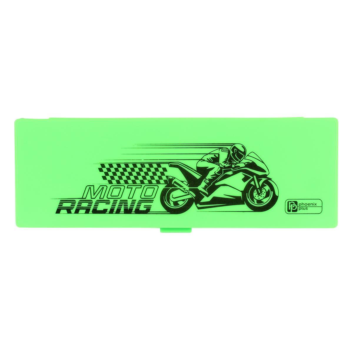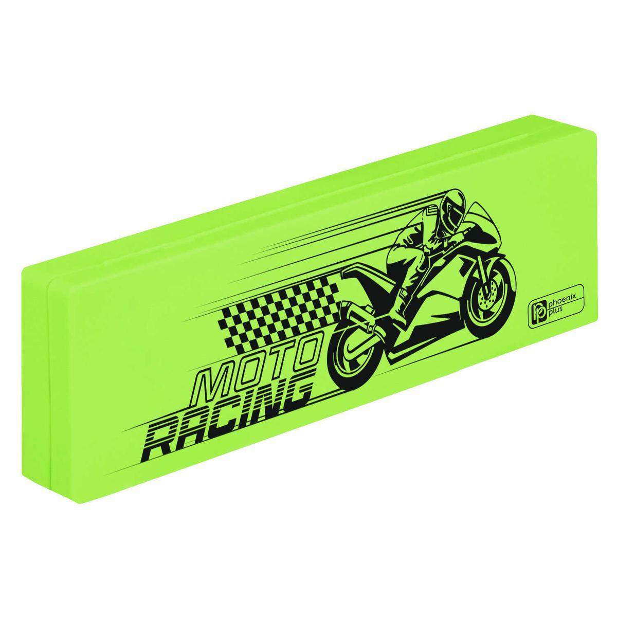 Пенал школьный 'MOTO RACING', 18х6х2,5 см, полистирол, ярко-зеленый