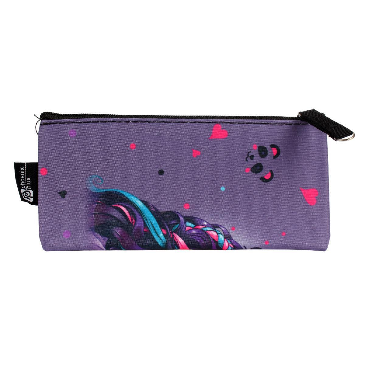 Пенал школьный "Девушка с пандой", 19.5 х 9 см, фиолетовый, микрофибра, удобный и практичный