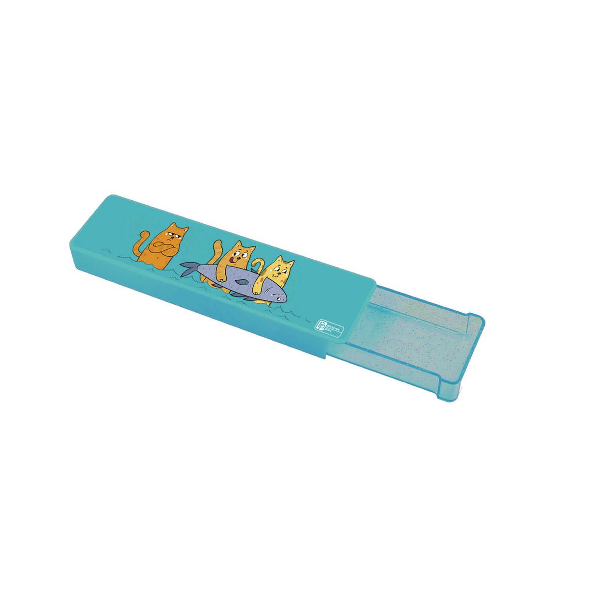 Пенал школьный "Три кота", 20 х 5.5 х 2.2 см, голубой, для канцелярии