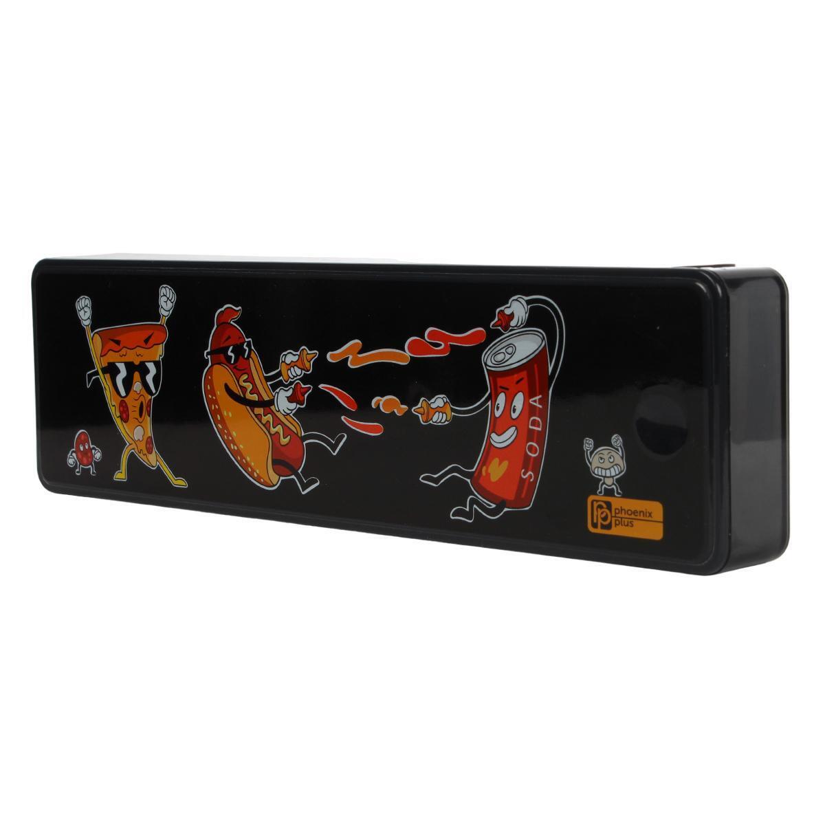 Подарите ребёнку эмоции от учебы с пеналом, где любимые продукты оживают в весёлом сражении! Мультяшные персонажи пиццы, хот-дога и газировки создают игривое настроение, превращая обычный школьный аксессуар в источник вдохновения.
