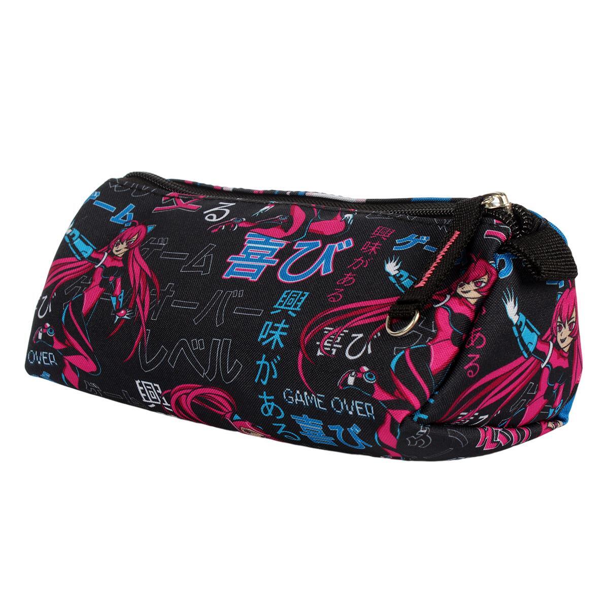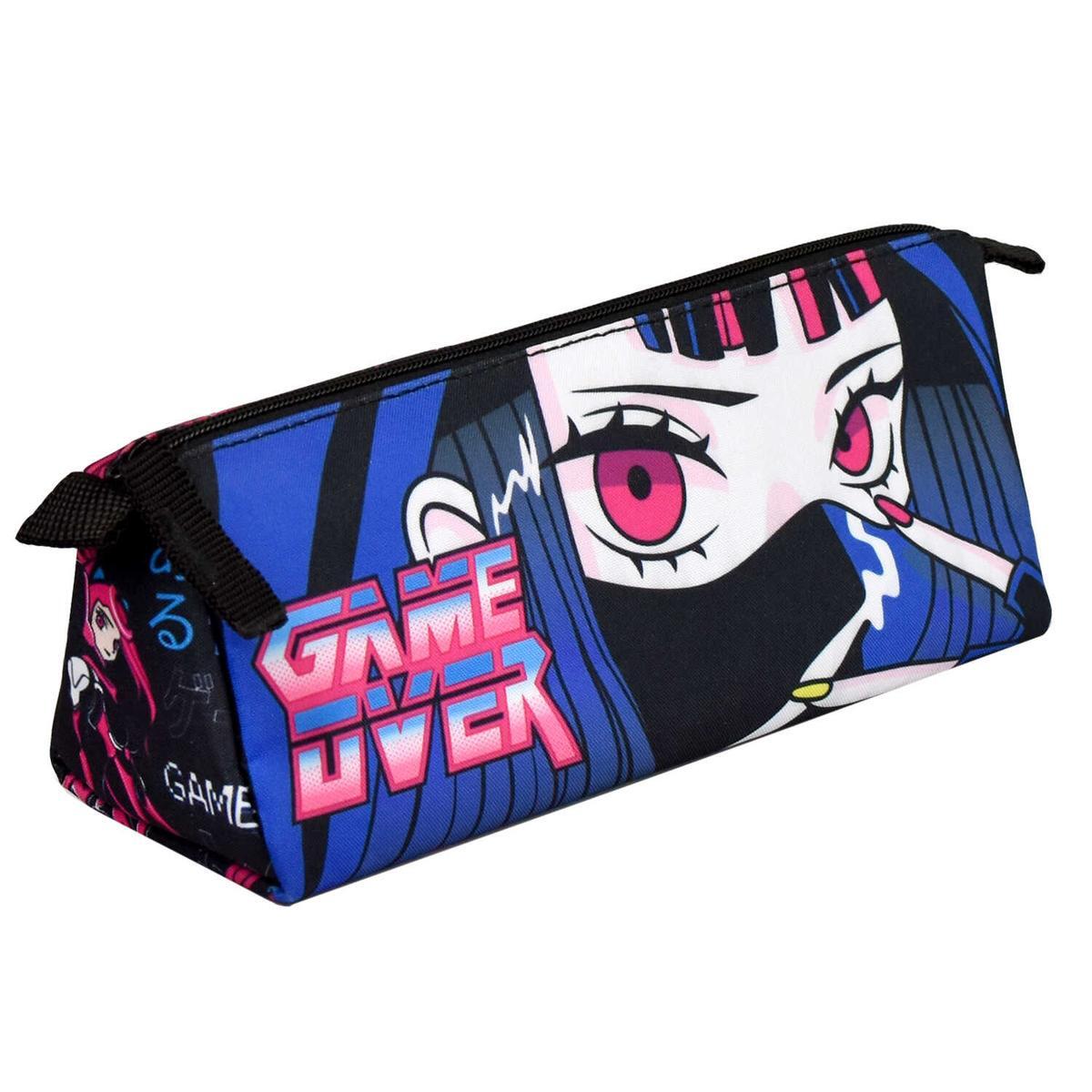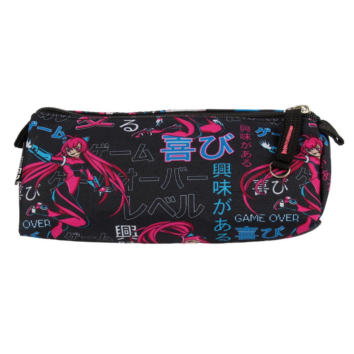 Пенал школьный "Кибераниме", стильный, 20х8,5х6,5 см, аниме-принт, GAME OVER, черный