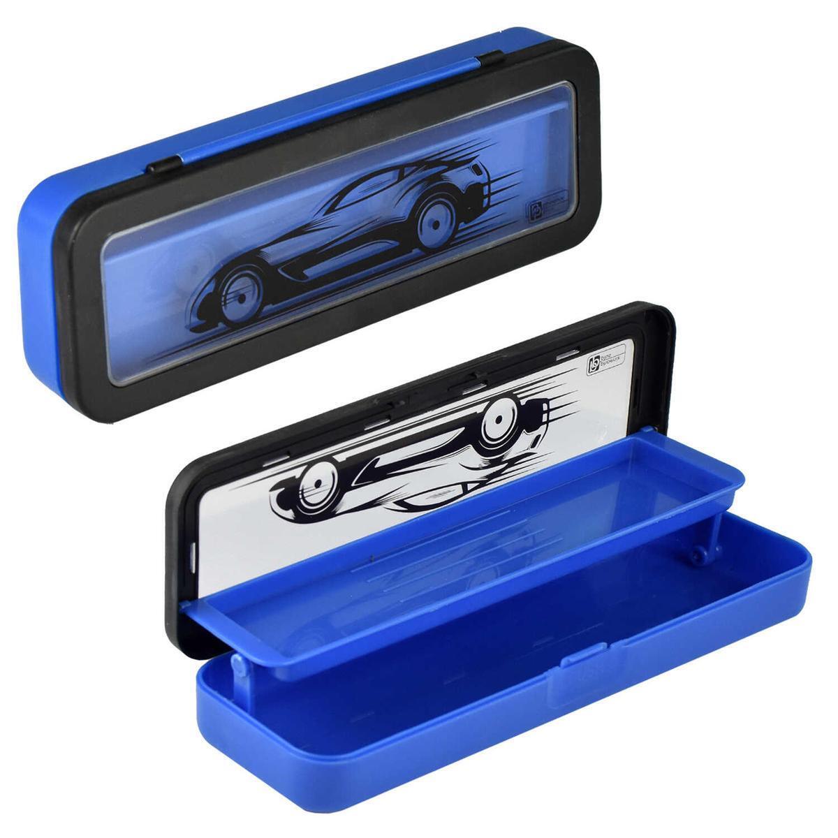 Пенал школьный "Суперкар", надежный замок, 21.5x7x3 см, черный/синий, для мальчиков