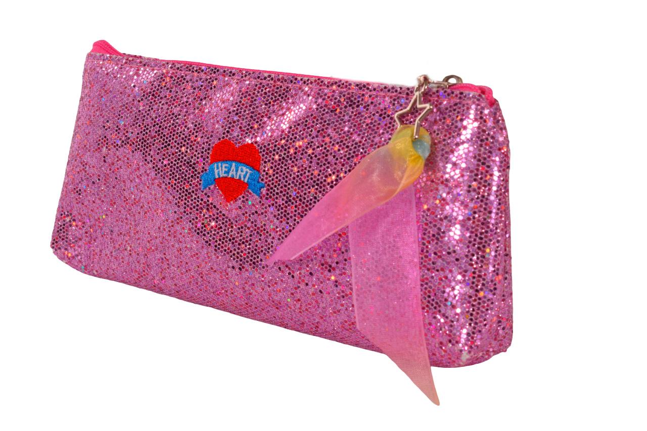 Пенал школьный "Sparkle", 20*8,5см, с блестками и аппликацией "HEART", розовый