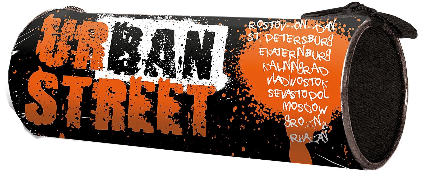 Пенал-тубус 'Urban street 2025', черный/оранжевый, 195*85мм, стильный дизайн