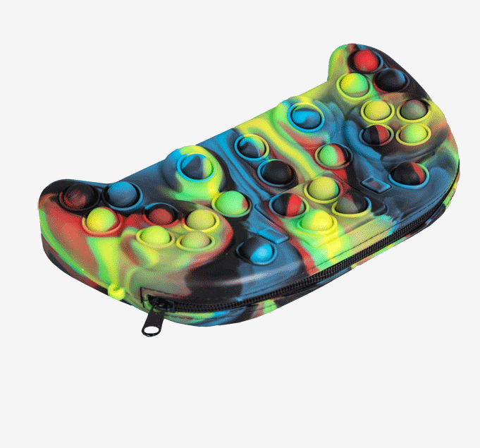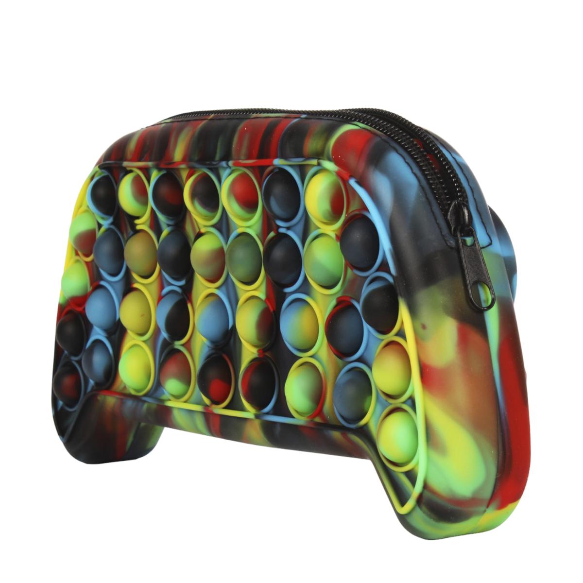 Пенал-джойстик силиконовый "Pop It Level Up Game", 23x12x4,5 см, черно-красно-желтый тай-дай, на молнии