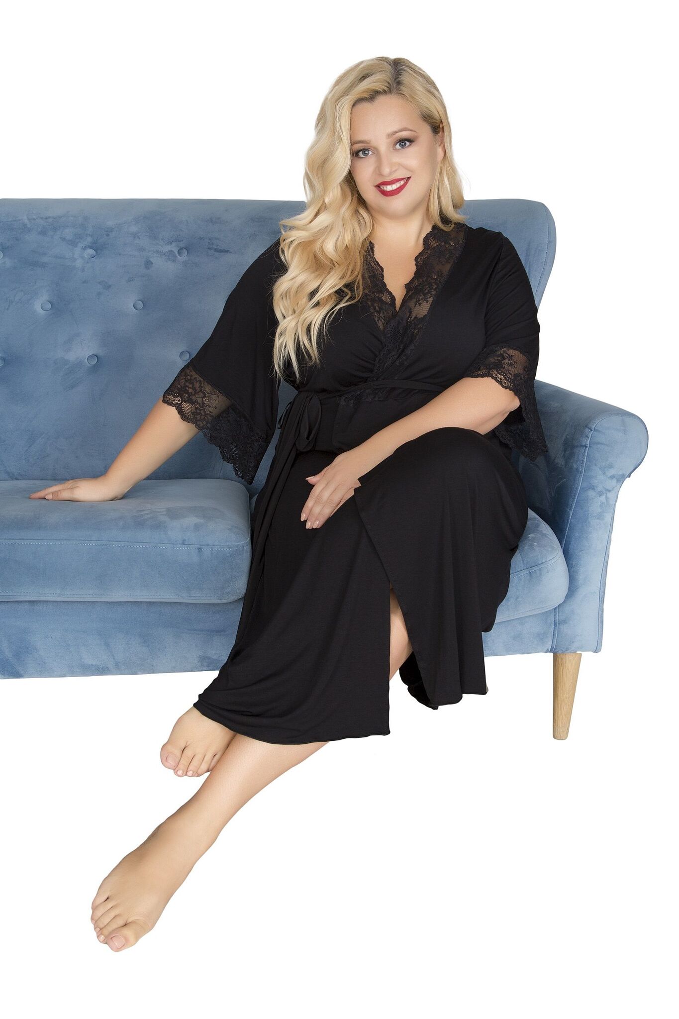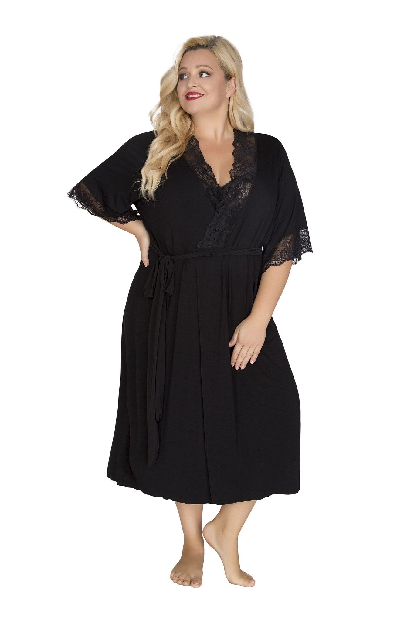 Пеньюар специально разработан для размера XXXL — просторный крой обеспечивает комфорт при ношении. Состав: 94% вискоза (дышащий гипоаллергенный материал) + 6% эластан для сохранения формы. Производство Польша гарантирует европейское качество пошива и отделки.