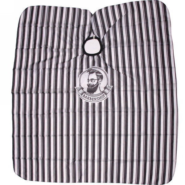 Пеньюар имеет размеры 160х140 см, что позволяет полностью закрыть плечи и тело клиента, обеспечивая защиту от стрижки и окрашивания. Круглый вырез для головы и свободная форма делают его удобным в использовании, а черно-белая полосатая расцветка добавляет стильный акцент в интерьер парикмахерской. Этот пеньюар подходит как для мужских, так и для женских стрижек, что делает его универсальным решением для любого мастера.