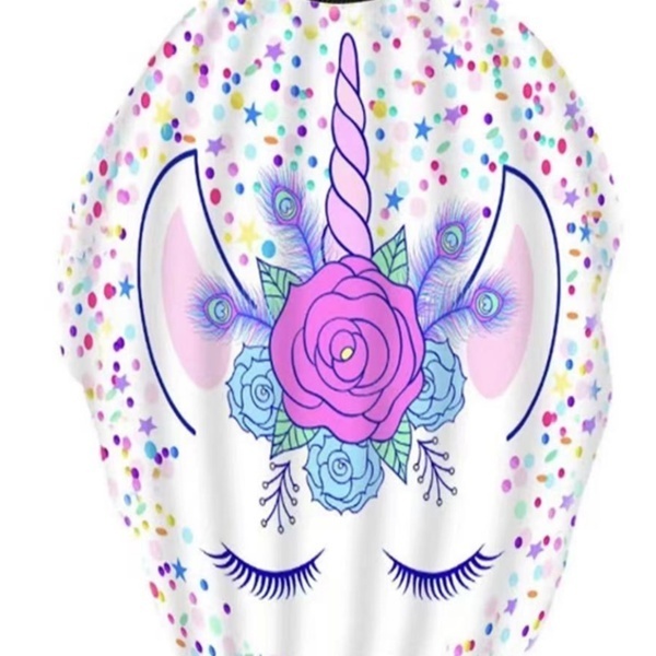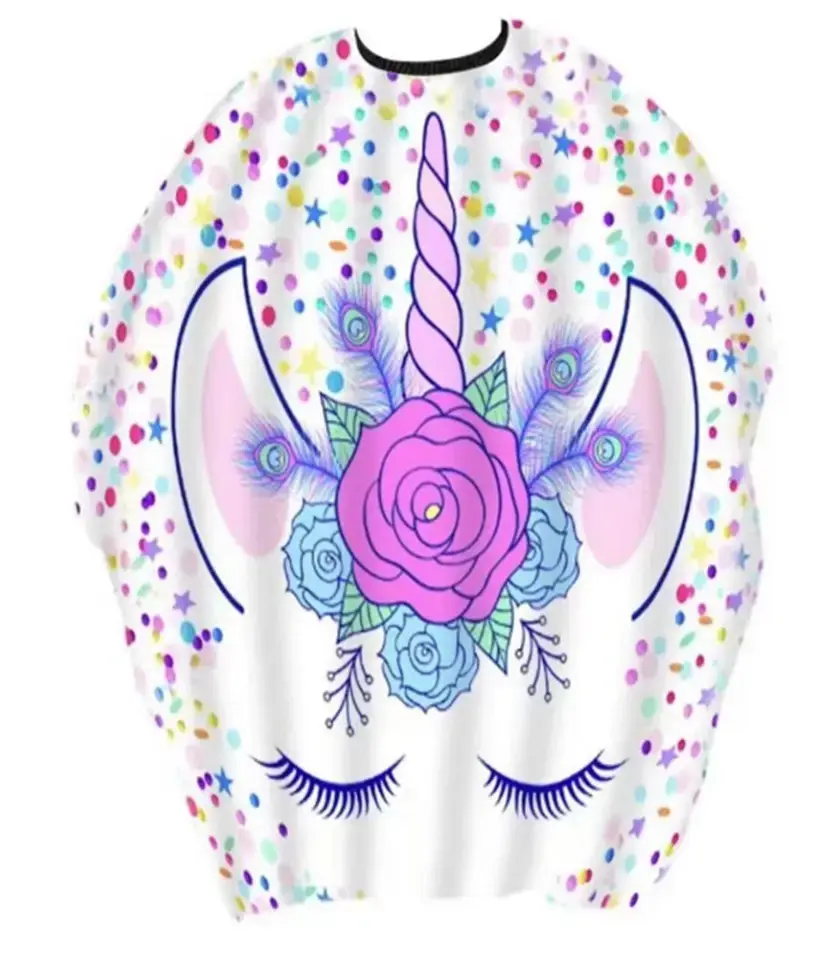 Пеньюар идеально подходит для использования в парикмахерских, на домашних стрижках или даже во время игр. Его размер 140х100 см обеспечивает полное покрытие, а свободная форма позволяет легко надевать и снимать пеньюар. Яркий дизайн с единорогом и разноцветными элементами привлечет внимание детей и сделает процесс стрижки более увлекательным.