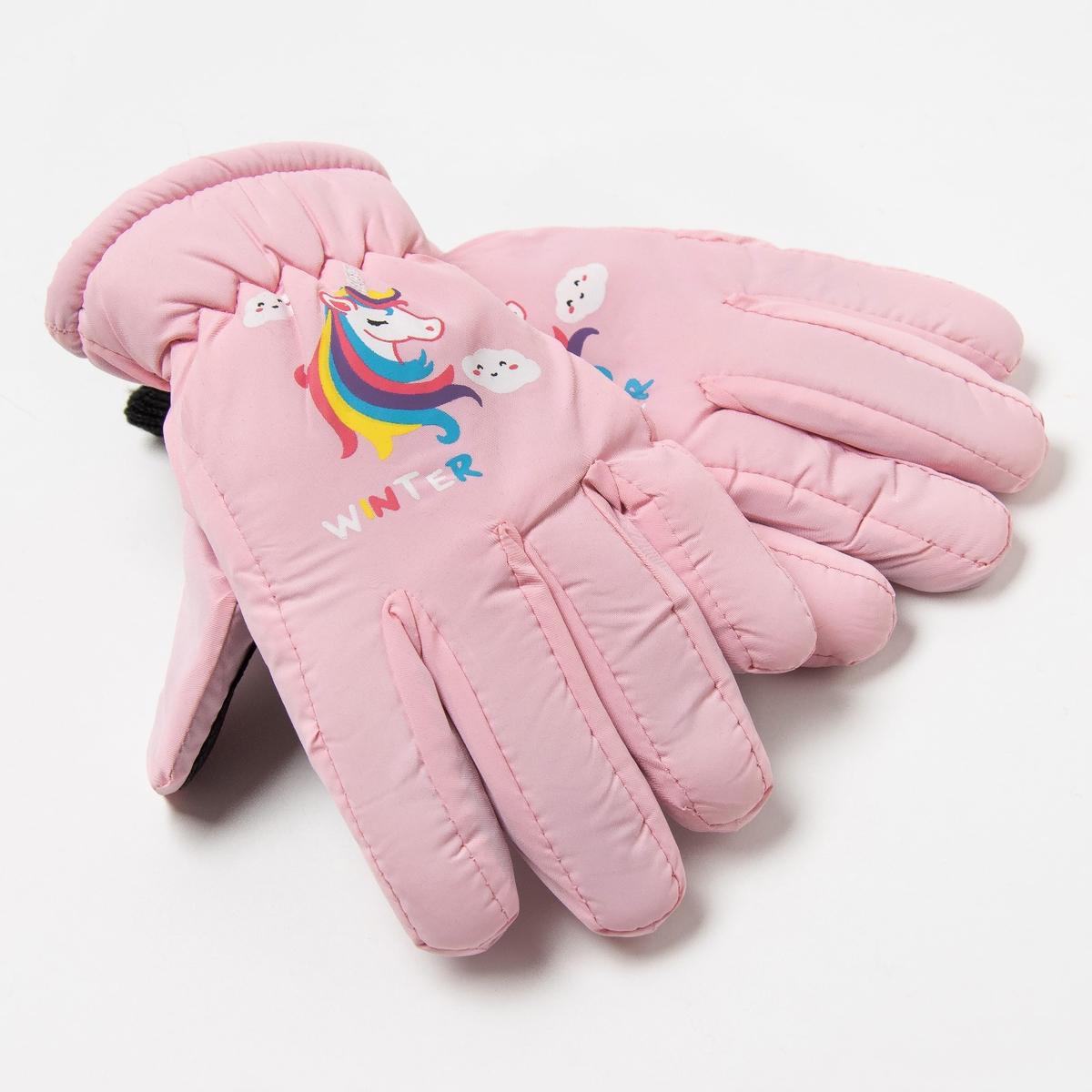 Перчатки для девочки размер 15, розовый, нейлон 100%, принт единорог, эластичный манжет, бренд "Rossini"