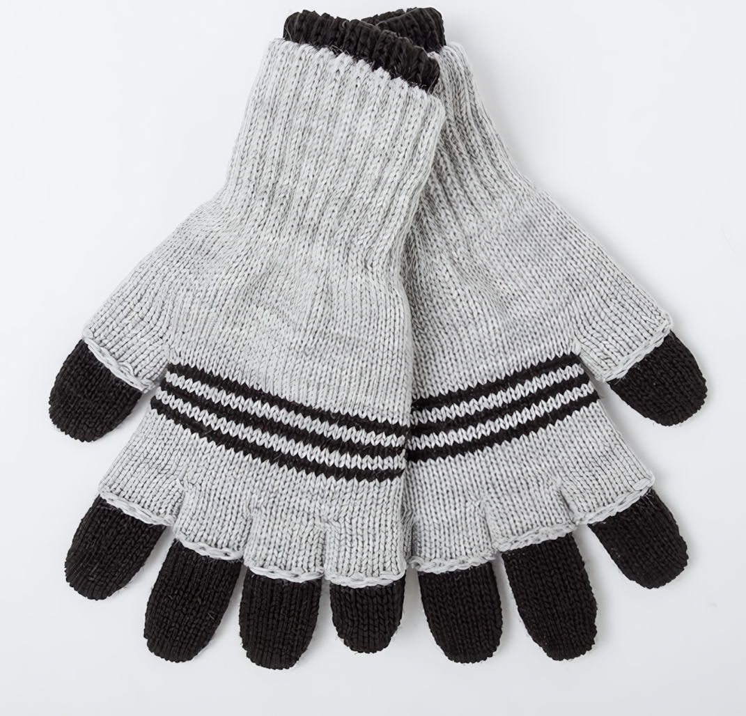 Перчатки имеют пять пальцев с открытыми кончиками, что удобно для мелкой моторики — ребёнок сможет держать снежок или пользоваться мелкими предметами, не снимая их. Горизонтальные полосы и аккуратная отделка придают им стильный вид. Размер 14 обеспечивает оптимальную посадку на детской руке.