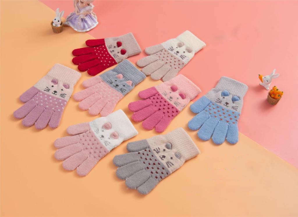 Перчатки для девочек 4‑6 лет, теплый шерстяно‑акриловый материал, разноцветный принт, с милым принтом животных