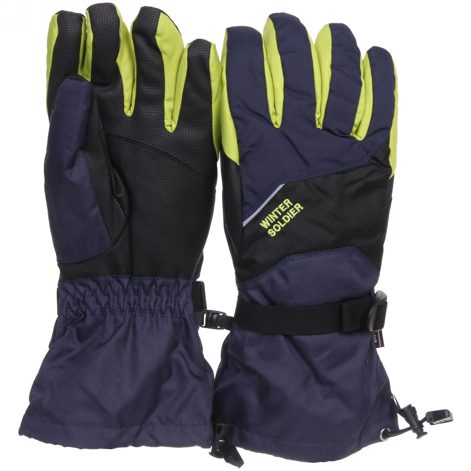 Износостойкий полиэстер с водоотталкивающей пропиткой сохраняет тепло даже при -15°C. Контрастные желтые акценты на темно-синем фоне делают дизайн стильным и заметным в снегу. Анатомическая форма повторяет естественный изгиб кисти для комфорта при длительном ношении.