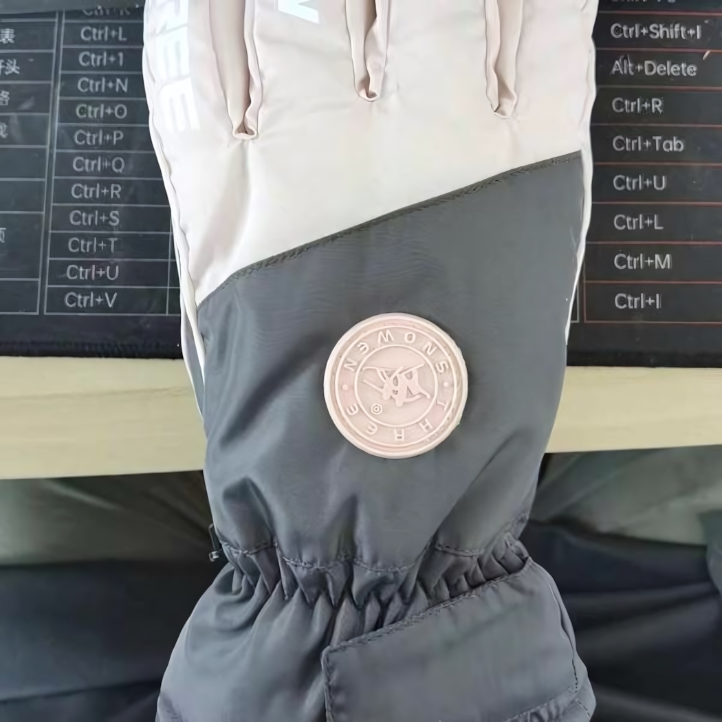 Перчатки выполнены из высококачественного полиэстера, который обладает водоотталкивающими свойствами, что делает их идеальными для использования в снежную погоду. Внутренняя сторона перчаток выполнена из текстурированной ткани, что обеспечивает комфортное прилегание и улучшенное сцепление. Логотип на манжете добавляет стильный акцент, а цветовая гамма — светло-розовая и темно-серая — делает их привлекательными для всех.