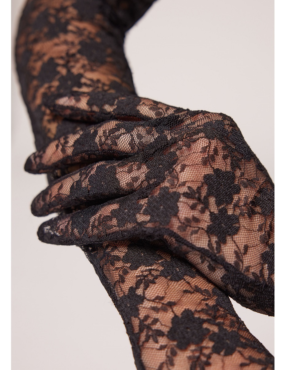 Элегантные гипюровые длинные перчатки черного цвета