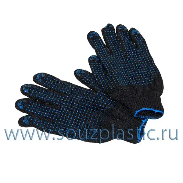 Размер универсальный — подходит большинству взрослых. Материал основы: трикотаж, покрытие – пвх точки синего цвета. Отгружается один товар, изображение носит ознакомительный характер. Цвет основы – черный, с синими точками и кантами. Перчатки продавются поштучно, каждая единица товара – одна пара.