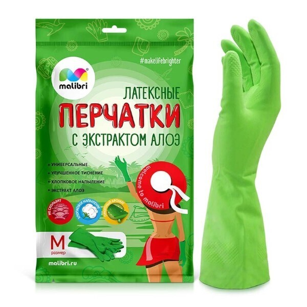 Перчатки латексные MALIBRI с экстрактом алоэ — это идеальное решение для защиты ваших рук в любых бытовых ситуациях. Эти универсальные перчатки обеспечивают надежную защиту от воды и вредных воздействий, позволяя вам выполнять домашние дела с комфортом и уверенностью.